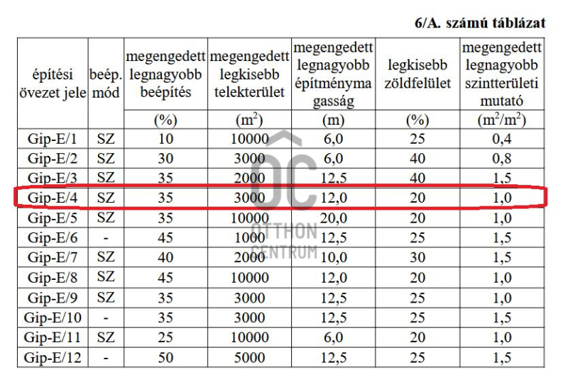 - övezeti besorolás: GIP-E/4