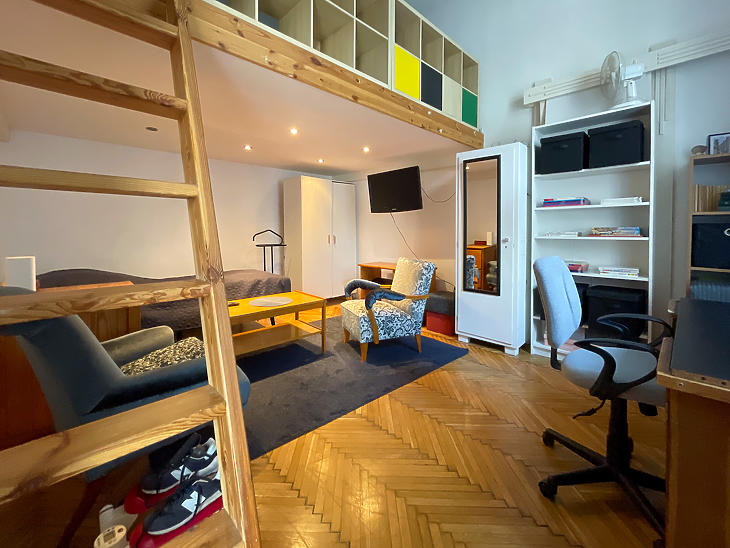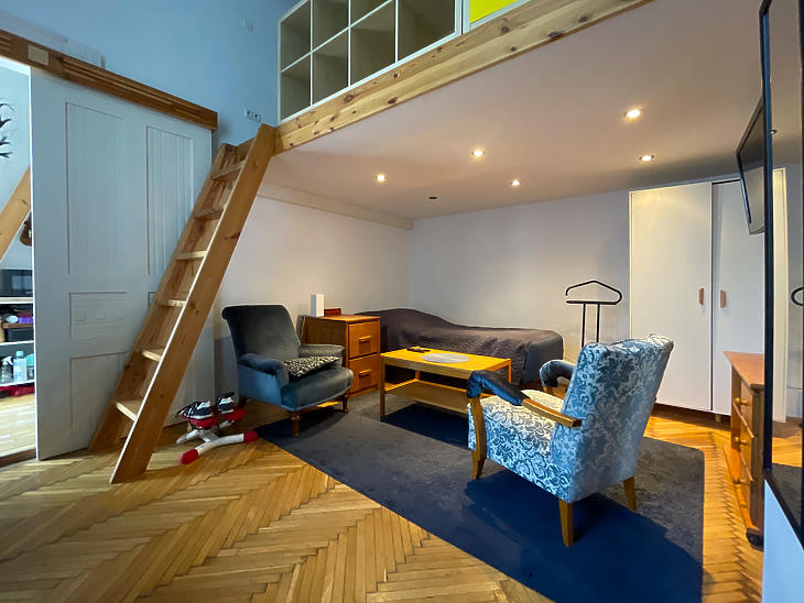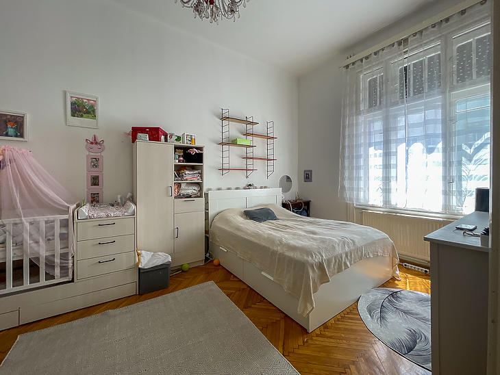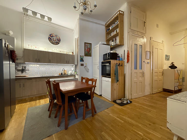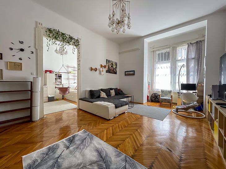 Palotanegyedben, egy lifttel rendelkező polgári társasházban, emeleti, tágas és világos, két bejáratos lakás eladó.A lakás két bejáratának köszönhetően egy kisebb lakrész is ki lett alakítva, praktikusan leválasztva, külön fürdővel, konyhával és galériás hálószobával.
