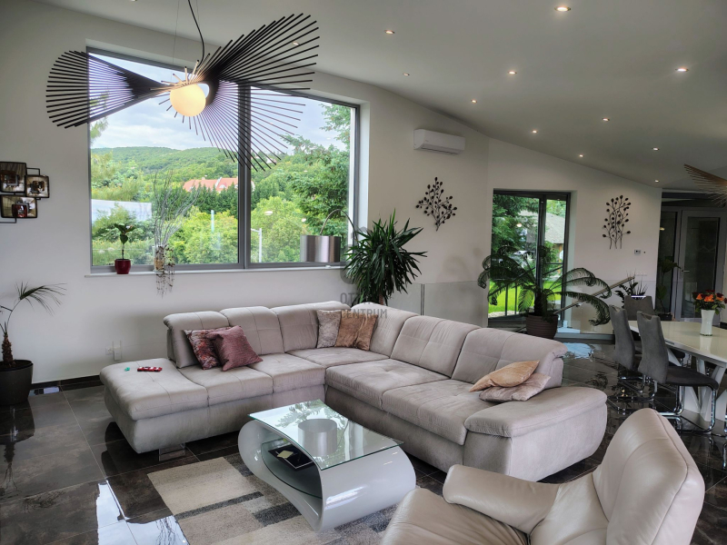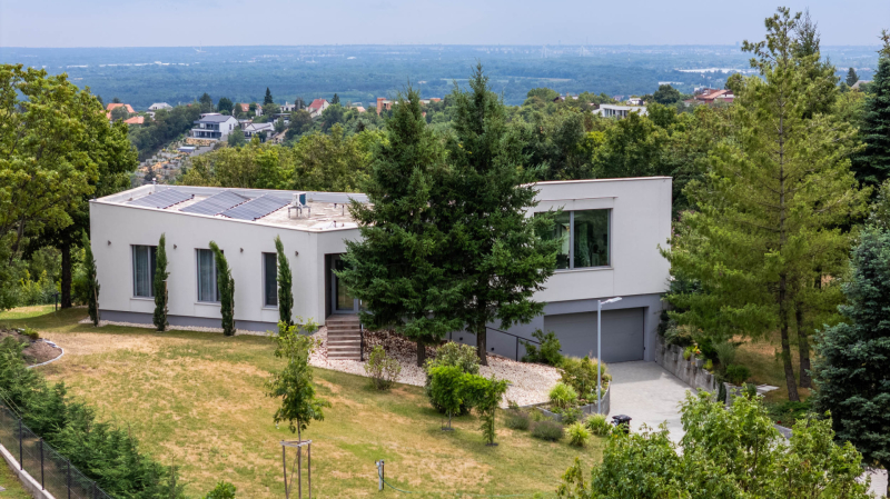 Eladásra kínálunk egy kivételes minőségű, 337 m2-es, (netto 298 m2) nappali + 3 hálószobás, prémium kategóriás családi házat, amely neves tervező közreműködésével, saját használatra épült. Az ingatlan nyugodt, természetközeli, elszeparált környezetben helyezkedik el, közvetlenül az erdő szomszédságában, ÖRÖKPANORÁMÁS kilátással, egy 2520 m²-es pr... + Tovább olvasom