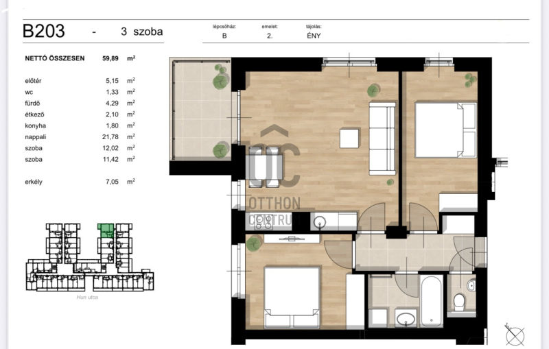 XIII. kerület egyik közkedvelt részén, a Hun utcában eladó egy 2. emeleti, kiváló elrendezésű, 60 m2-és, 3 szobás, teraszos lakás. A modern ingatlan okosotthon-rendszerrel felszerelt. Főbb jellemzők: