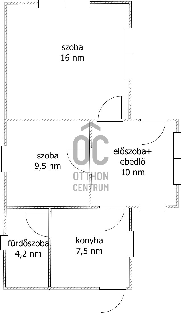 2 szoba, előszoba+étkező, fürdőszoba és konyha.