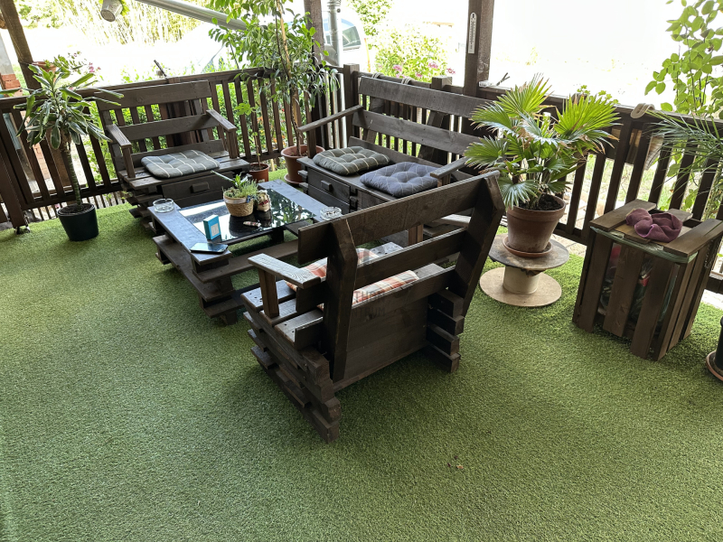 - üvegház a kert egyik részében