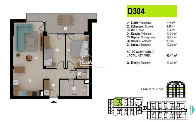 Lakás | 62 m2 | 3 szoba