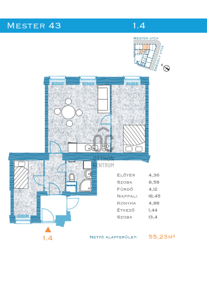 Lakás | 44 m2 | 1 szoba
